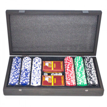 ПОКЕРНИЙ НАБІР В ЧОРНОМУ ДЕРЕВ'ЯНОМУ ФУТЛЯРІ 39х22см